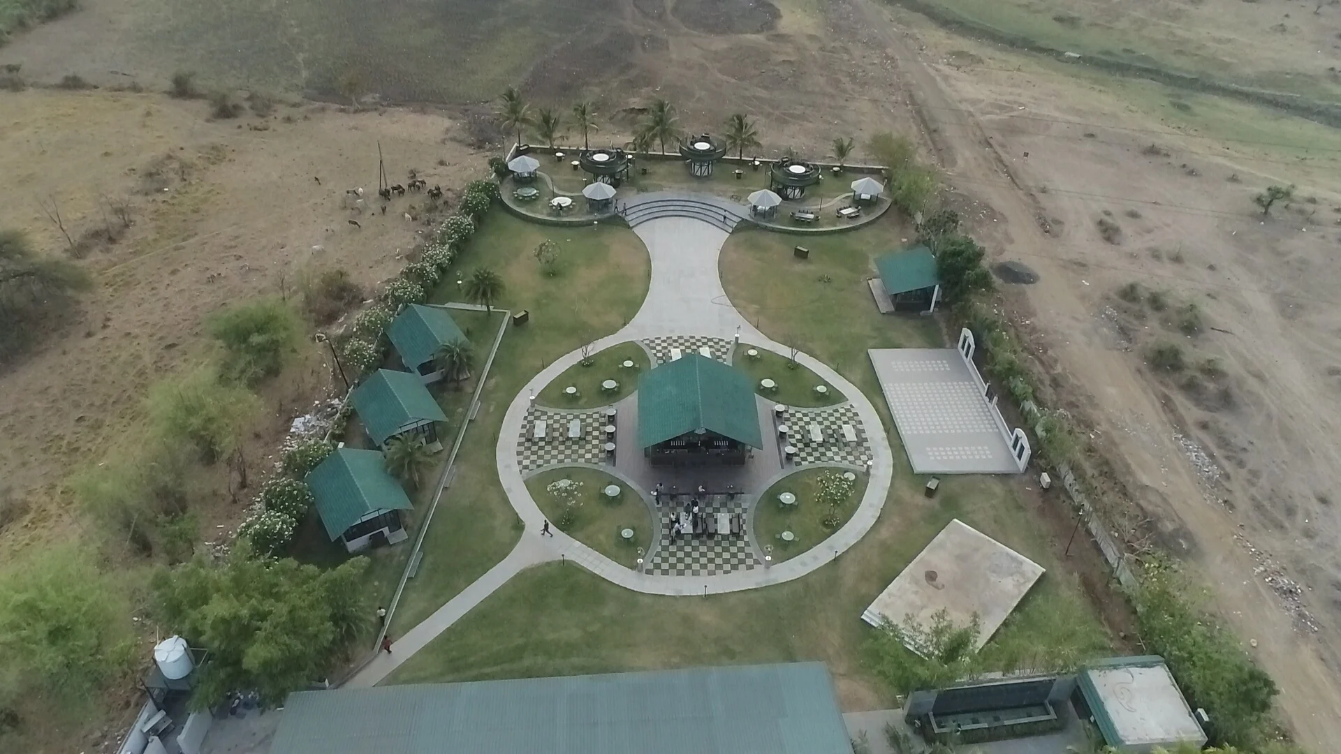 DUBLIN 88- the Irish Hub is an Irish themed lake view restaurant and bar spanning over an area of 3400sq.m. The site is a beautiful outdoor arena with a spectacular view of the Surabirdi lake in Nagpur. The design is an organic master plan that integrates the whole site and creates variety of spatial arrangements to experience visual and spatial connect! The various zones include- The TERRACE’ zone, which is the closest section to the back waters. According to the context, cantilevered round terraced structures of twenty feet at a height that will have been designed very carefully at a height such that it only enhances and not breaks the view and experience of the waters. It thus creates different visual and comfort zones. Also there are gazebos, barrel tables and other seating styles planned around the terraces that enhance the beauty of the terraces and its scenic view. The BAR, is a central island bar with a green court encircled by a curved promenade. It is designed in an old school medium & the court around is defined by Champa trees. This court thus gives a very warm and welcoming experience. The rustic furniture with barrel tables perfectly sink in the whole vibe! The VILLAS, is a section with three Irish cottages named after three Irish personalities that bring in the old school charm back to life with its interiors. They are placed obliquely in order to get the complete view of the site, especially the waters.