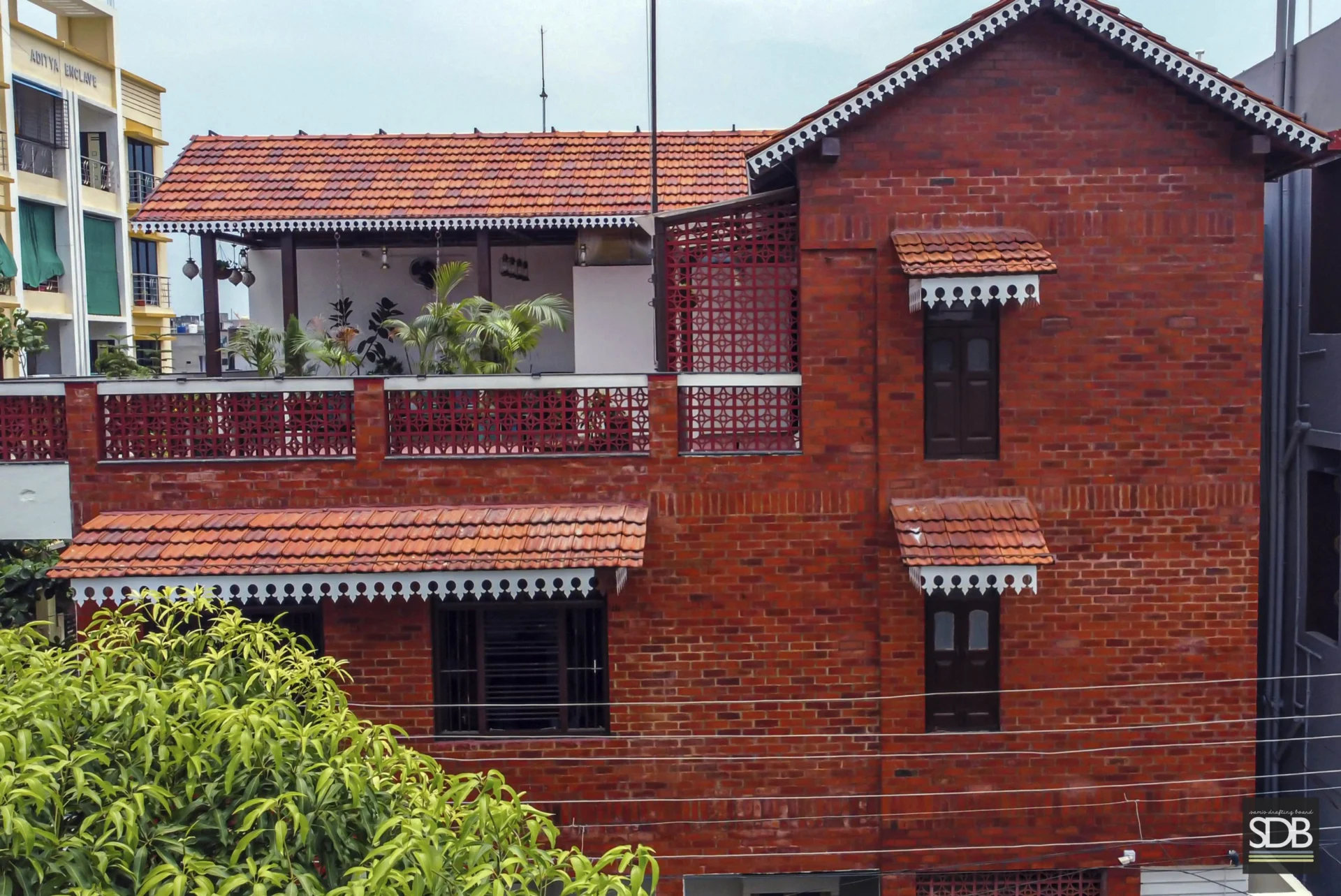 Eco-home for Kalambe family is a project that respects traditional practices in design in order to achieve optimum comfort in terms of natural light, ventilation and natural beauty. The project thus involves careful planning, methodologies and material usage to work closely with climate and sustainability. Thus, this home design is a combination of breathing materials such as clay, terracotta bricks and tiles, reclaimed set of wooden furniture, glass and tiles, Mangalore pitched roofing with construction technologies such as filler slab, exposed brick work and orientation of the built keeping sun path as the primary focus. The proportions of the overall architecture design are also well taken care of in terms of the construction height, balance of negative- positive spaces and brickwork composition in elevation design with minimalist interiors to suit their traditional way of living which suits the sustainable lifestyle. All and all its a beautiful and affordable traditional residence design for Kalambe family.